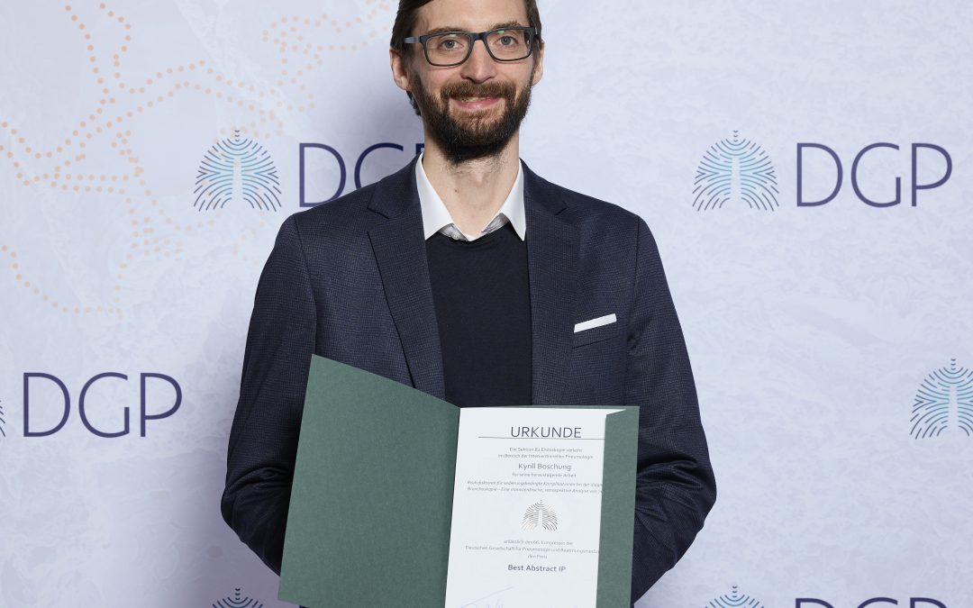 Eine besondere Auszeichnung für unser Institut für Pneumologie: Oberarzt Kyrill Boschung wurde anlässlich des diesjährigen Pneumologen-Kongresses in München von der Deutschen Gesellschaft für Pneumologie (DGP) geehrt.